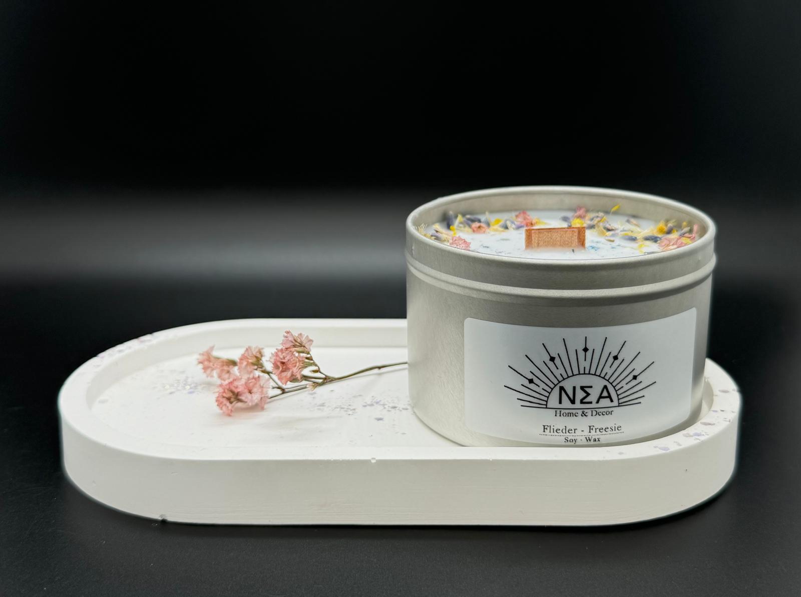 Der Duft vom frisch geschnittenem Flieder umhüllt von dem natürlichen und klaren Duft der Freesie & Limette, bringt frische Atmosphäre in jedes zu Hause. Durch die blumigen Noten aus Nelke, Maiglöckchen, Moschus und Jasmin überzeugt der leicht blumige Duft jeden Kerzenliebhaber.