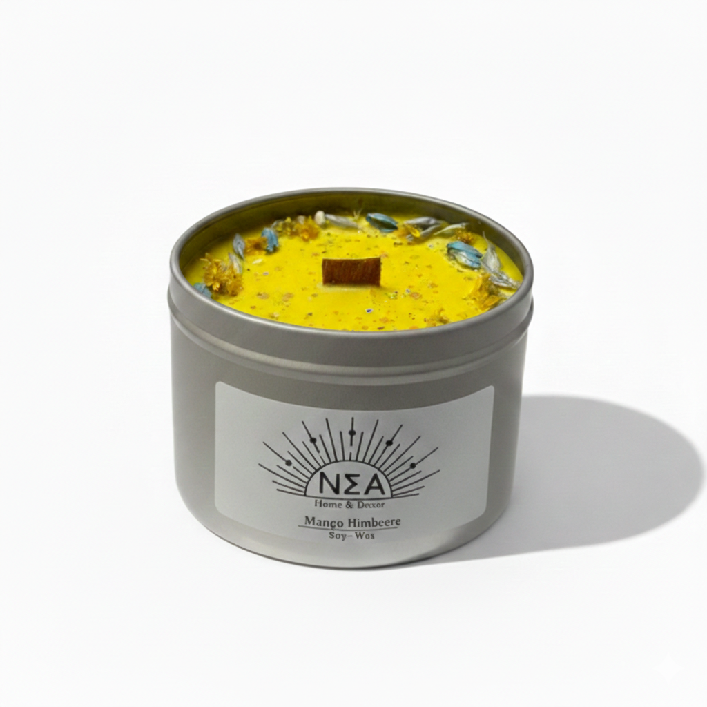 Die Mango-Himbeere Duftkerze aus Sojawachs vereint sonnige Fruchtigkeit mit sanfter Süße und schafft eine Atmosphäre voller Leichtigkeit und Wohlgefühl.
